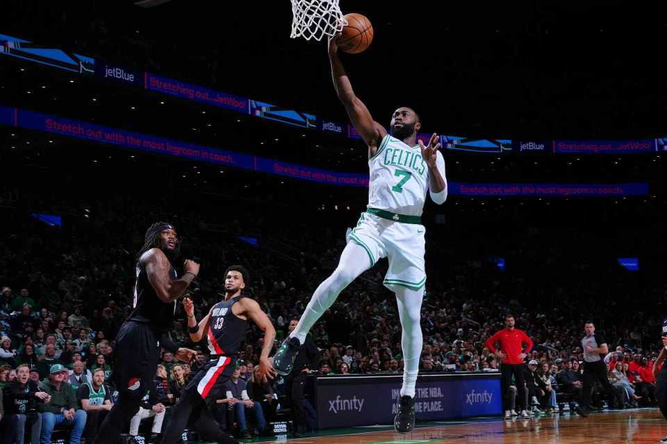 中场休息回来,凯尔特人扩大56-39领先,西索科补篮得分,凯尔特人连得5分扩大61-41领先优势。开拓者连追4分,普里查德三分命中,开拓者再得4分,布朗中投维持17分优势。开拓者一波小高潮缩小差距,凯尔特人单节23-28再输5分,三节结束凯尔特人被追到75-65领先开拓者。前三节比赛,开拓者三分30中8,格兰特14分、卡马拉11分与霍勒迪12分;凯尔特人三分27中8,普里查德20分与布朗19+7+4+3。